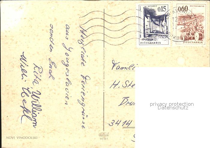 old postcard Novi Vinodolski Meer Hafen Kirche postalisch gelaufen Erhaltung siehe scans [KathaD79]
