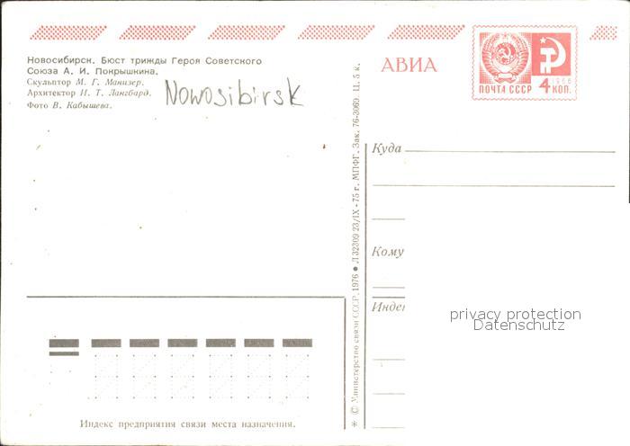 Novosibirsk Nowosibirsk Denkmal Pokryschkin postalisch nicht gelaufen Ganzsache (eingedruckte Briefmarke) Erhaltung siehe scans