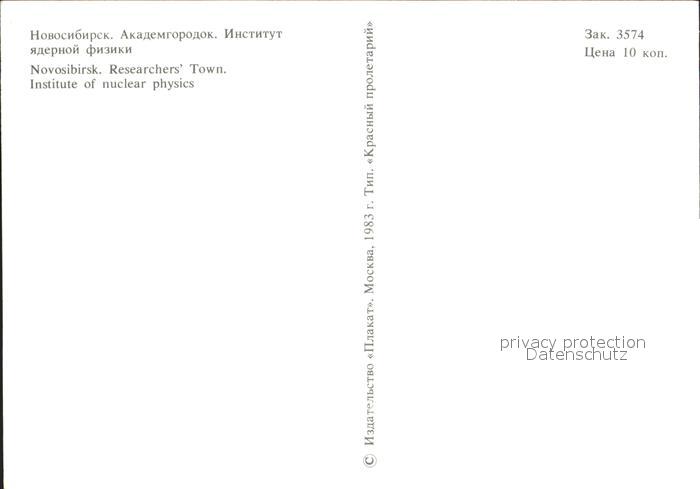 Novosibirsk Nowosibirsk Researchers Town Institute of nuclear physics postalisch nicht gelaufen Erhaltung siehe scans