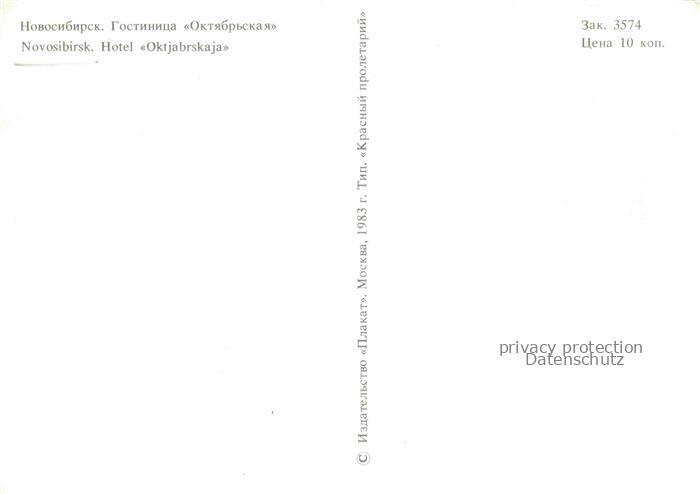 74111019 Novosibirsk Nowosibirsk RU Hotel Oktjabrskaja postalisch nicht gelaufen Erhaltung siehe scans [WerneD78] KatCode: 11440