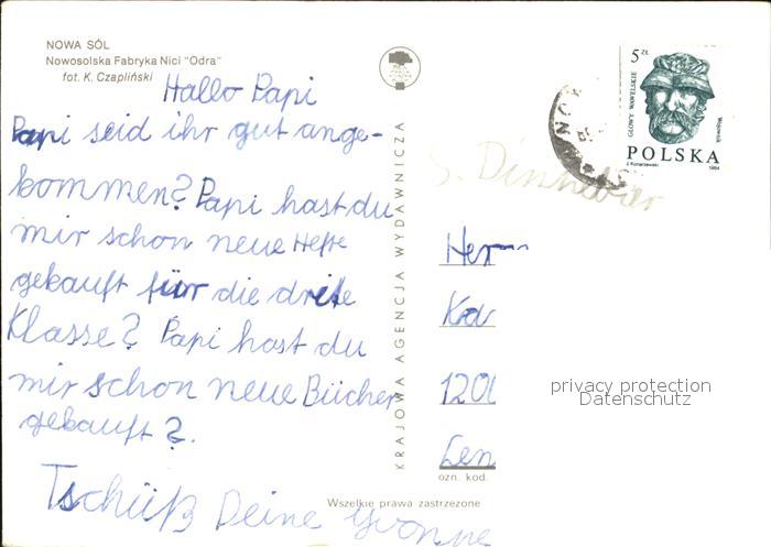 old postcard Nowa Sol Niederschlesien Nowosolska Fabryka Nici Odra postalisch gelaufen Erhaltung siehe scans