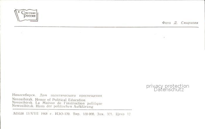 Nowosibirsk Novosibirsk Haus der Politischen Aufklaerung postalisch nicht gelaufen Erhaltung siehe scans