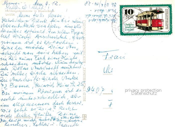 old postcard Nowosibirsk Novosibirsk Heldengedenkstaette postalisch gelaufen Erhaltung siehe scans [LiesaD40]