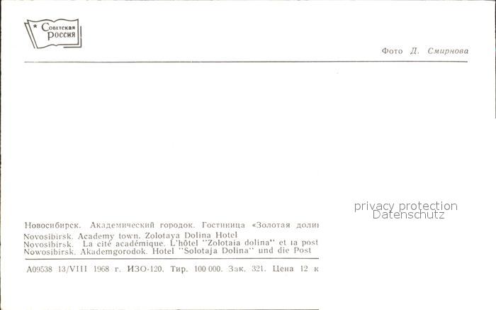 Nowosibirsk Novosibirsk Hotel Solotaja Dolina postalisch nicht gelaufen Erhaltung siehe scans