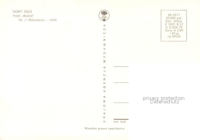 13211383 Nowy Sacz Hotel Beskid postalisch nicht gelaufen Erhaltung siehe scans [LiesaD40] KatCode: 11410