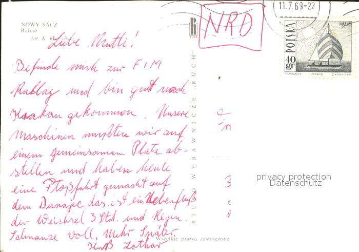old postcard Nowy Sacz Kleinpolen Rathaus postalisch gelaufen Erhaltung siehe scans