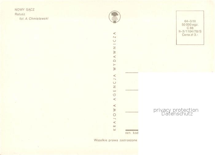 Nowy Sacz Kleinpolen Ratusz Rathaus postalisch nicht gelaufen Erhaltung siehe scans [FriedD77]