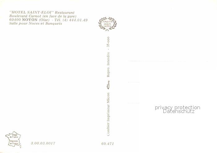 12682788 Noyon Oise Hotel Saint-Eloi postalisch nicht gelaufen Erhaltung siehe scans [NatalD47] KatCode: 11170060360471