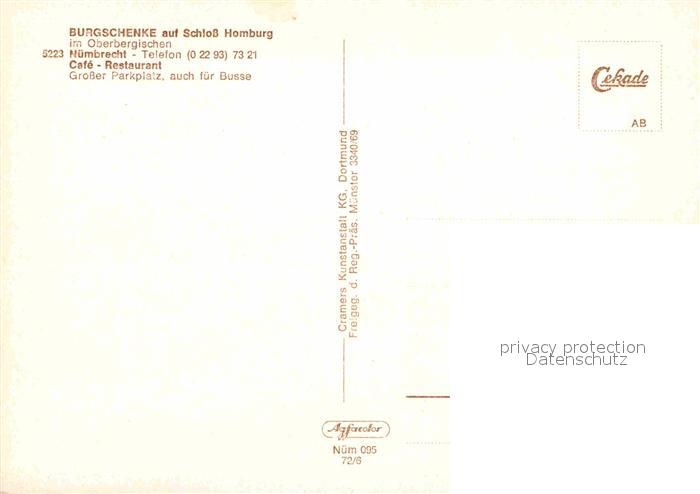 72707975 Nuembrecht Burgschenke auf Schloss Homburg Fliegeraufnahme postalisch nicht gelaufen Erhaltung siehe scans [WerneD78] KatCode: 11110005374032