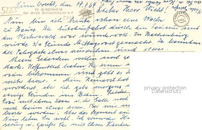 33703449 Nuembrecht Ev Blindenheim der christl Blindenmission postalisch nicht gelaufen Erhaltung siehe scans [WerneD78] KatCode: 11110005374032