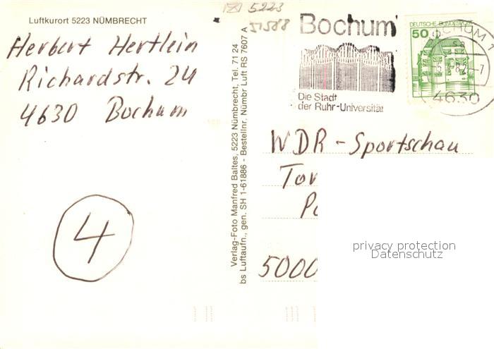 73122053 alte Postkarte Nuembrecht Fliegeraufnahme postalisch gelaufen Erhaltung siehe scans [NatalD47] KatCode: 11110005374032
