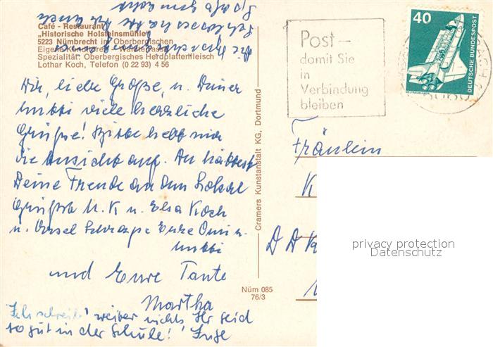 73659015 alte Postkarte Nuembrecht Historische Holsteinsmuehle Cafe Restaurant postalisch gelaufen Erhaltung siehe scans [FriedD77] KatCode: 11110005374032