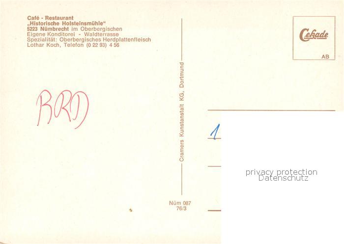 73659017 Nuembrecht Historische Holsteinsmuehle Cafe Restaurant postalisch nicht gelaufen Erhaltung siehe scans [FriedD77] KatCode: 11110005374032