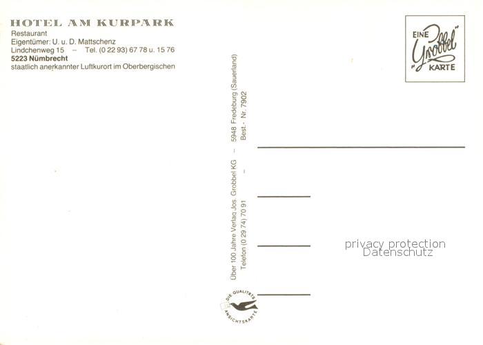 73658887 Nuembrecht Hotel am Kurpark Restaurant Fremdenzimmer postalisch nicht gelaufen Erhaltung siehe scans [FriedD77] KatCode: 11110005374032