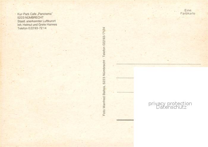 73649190 Nuembrecht Kurpark Cafe Panorama Tiergehege postalisch nicht gelaufen Erhaltung siehe scans [FriedD77] KatCode: 11110005374032