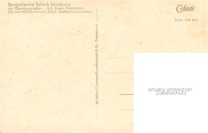 73779835 Nuembrecht Schloss Homburg im Oberbergischen postalisch nicht gelaufen Erhaltung siehe scans [FriedD77] KatCode: 11110005374032