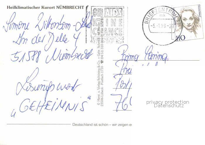 72765298 alte Postkarte Nuembrecht Teilansichten Heilklimatischer Kurort Schwanenteich Brunnen postalisch gelaufen Erhaltung siehe scans [FriedD77] KatCode: 11110005374032