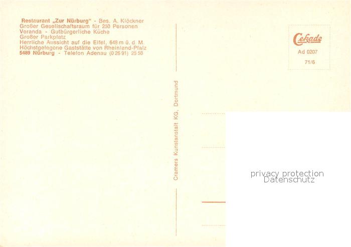 73660591 Nuerburg Restaurant zur Nuerburg am Nuerburgring Burgruine postalisch nicht gelaufen Erhaltung siehe scans [FriedD77] KatCode: 11110007131058