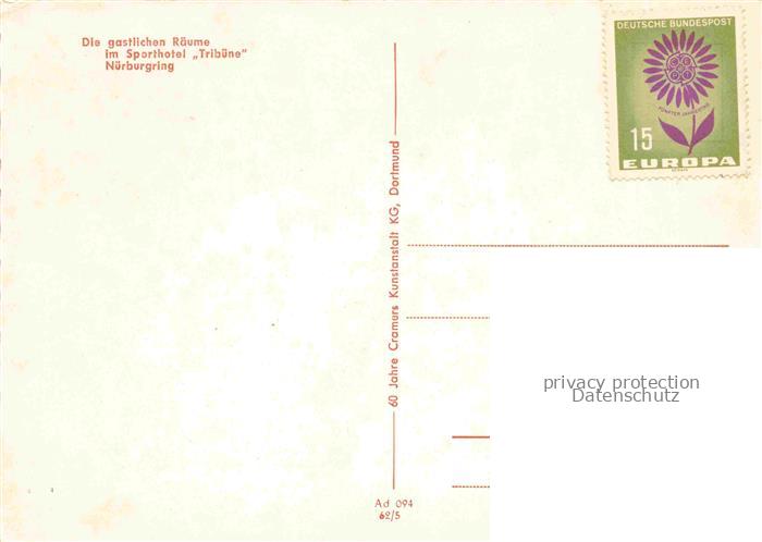 74150743 Nuerburgring Autorennstrecke Eifel Adenau Rheinland-Pfalz Sporthotel Tribuene Gastraum postalisch nicht gelaufen Erhaltung siehe scans [WerneD78] KatCode: 11110007131058