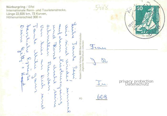 74053233 alte Postkarte Nuerburgring Autorennstrecke Eifel Panoramakarte aus der Vogelperspektive Autorennen Motorradrennen postalisch gelaufen Erhaltung siehe scans [FriedD77] KatCode: 11110007131058