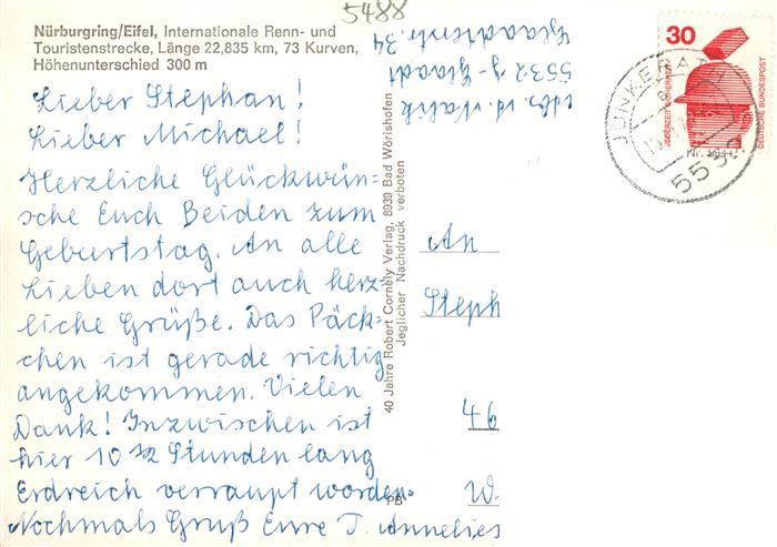 73891025 alte Postkarte Nuerburgring Internationale Renn uind Touristenstrecke postalisch gelaufen Erhaltung siehe scans [FriedD77] KatCode: 11110007131058