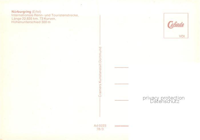 73858243 Nuerburgring Internationale Renn- und Touristenstrecke postalisch nicht gelaufen Erhaltung siehe scans [FriedD77] KatCode: 11110007131058
