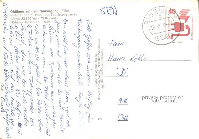 72567407 alte Postkarte Nuerburgring Oldtimer Rennen postalisch gelaufen Erhaltung siehe scans [LiesaD40] KatCode: 11110007131058