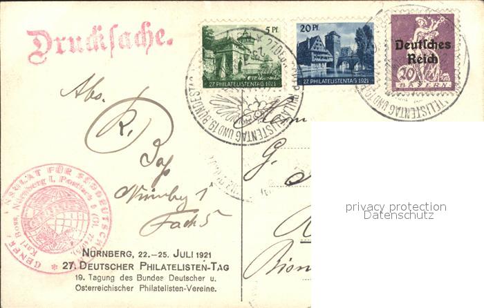 31840411 alte Postkarte Nuernberg 27. Deutsscher Philatistentag postalisch gelaufen Erhaltung siehe scans KatCode: 11110009564000