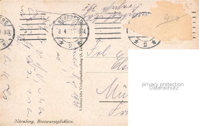 72981793 alte Postkarte Nuernberg Bratwurstgloecklein Sollmann Kuenstlerkarte postalisch gelaufen Erhaltung siehe scans [FriedD77] KatCode: 11110009564000