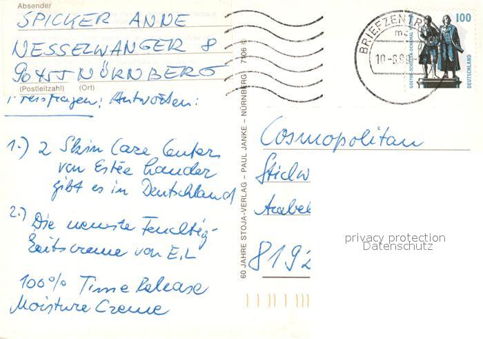 73248298 alte Postkarte Nuernberg Brunnen Fachwerkhaeuser Stadtmauer postalisch gelaufen Erhaltung siehe scans [KathaD81] KatCode: 11110009564000