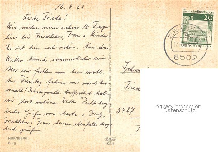 73048413 alte Postkarte Nuernberg Burg postalisch gelaufen Erhaltung siehe scans [KathaD81] KatCode: 11110009564000