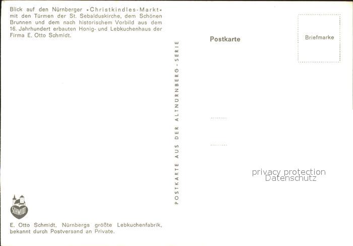 Nuernberg Christkindles Markt Sebalduskirche Weihnachtsgrusskarte postalisch nicht gelaufen Erhaltung siehe scans