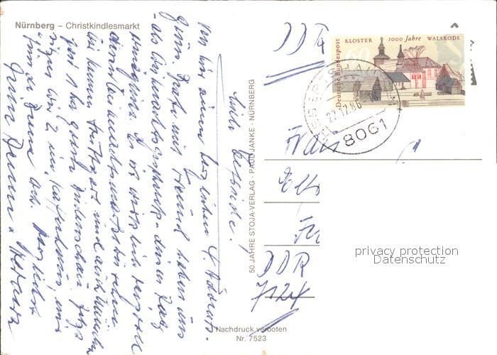 alte Postkarte Nuernberg Christkindlesmarkt postalisch gelaufen Erhaltung siehe scans