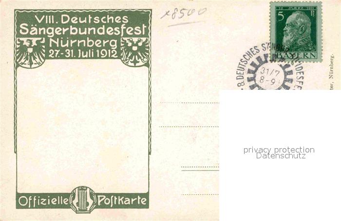 42688301 alte Postkarte NueRNBERG CITY 8. Deutsches Saenger-Bundes-Fest postalisch gelaufen Erhaltung siehe scans [LiesaD40] KatCode: 11110009564000