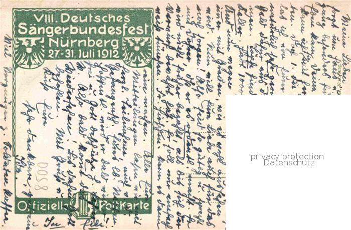 42688304 NueRNBERG CITY 8. Deutsches Saengerfest postalisch nicht gelaufen Erhaltung siehe scans [LiesaD40] KatCode: 11110009564000