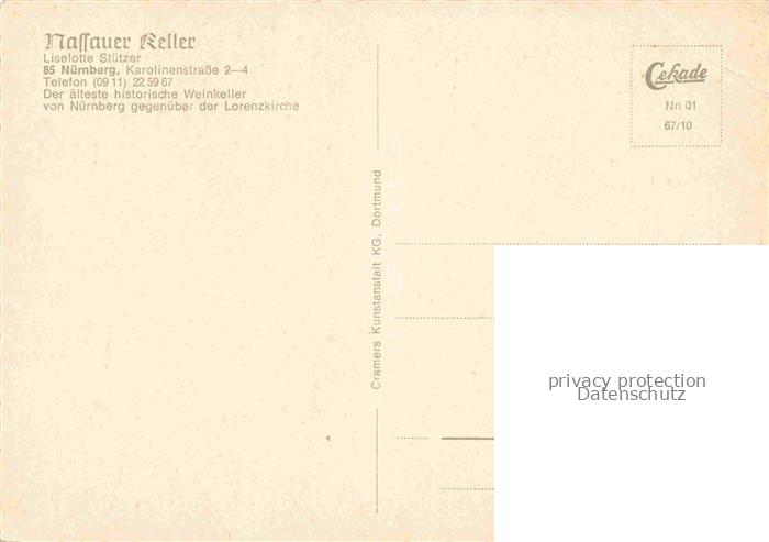 74049404 NueRNBERG CITY 900 Jahre Nassauer Keller aelteste historische Weinkeller der Stadt postalisch nicht gelaufen Erhaltung siehe scans [FriedD77] Frie Katcode 11110009564000