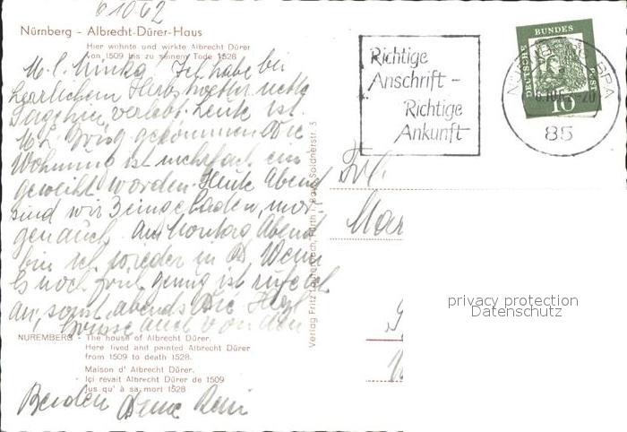 72063675 alte Postkarte NueRNBERG CITY Albrecht- Duerer- Haus postalisch gelaufen Erhaltung siehe scans KatCode: 11110009564000