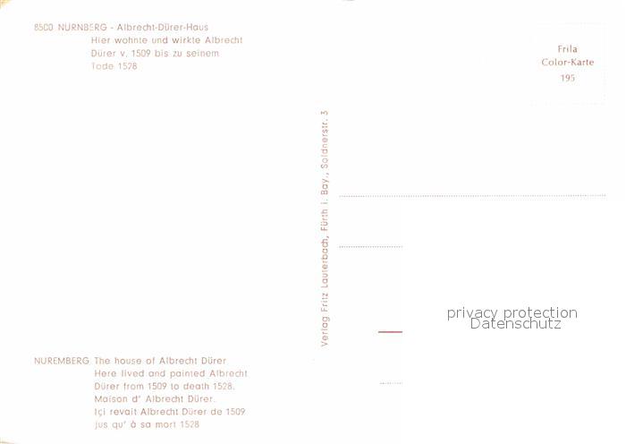72891219 NueRNBERG CITY Albrecht Duerer Haus postalisch nicht gelaufen Erhaltung siehe scans [WerneD78] KatCode: 11110009564000