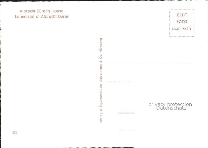 72471532 NueRNBERG CITY Albrecht-Duerer-Haus postalisch nicht gelaufen Erhaltung siehe scans KatCode: 11110009564000