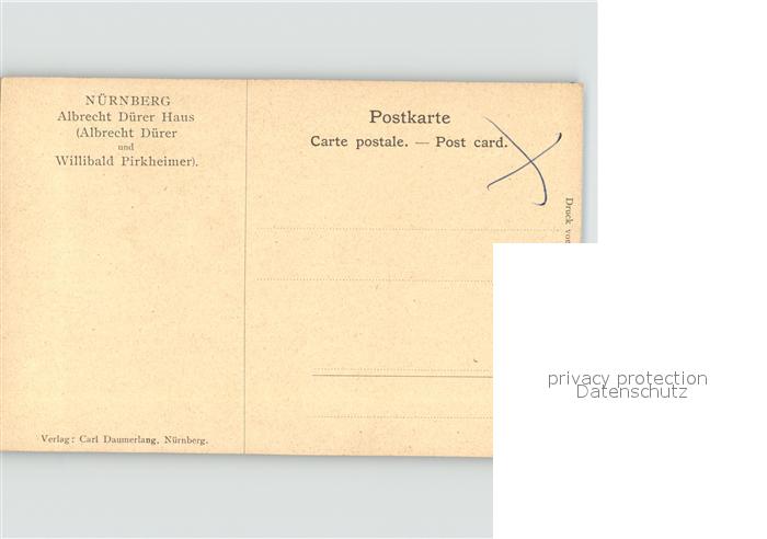 71850204 NueRNBERG CITY Albrecht Duerer Haus Willibad Pirkheimer Kuenstlerkarte Carl Daumerlang postalisch nicht gelaufen Erhaltung siehe scans KatCode: 11110009564000