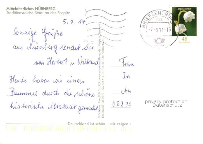 72960088 alte Postkarte NueRNBERG CITY Albrecht-Duererhaus Heilig-Geist-Hospital Peter-Henlein-Denkmal postalisch gelaufen Erhaltung siehe scans [PaolaD17] KatCode: 11110009564000