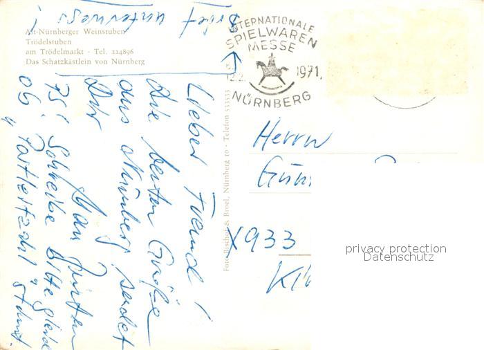 73666853 NueRNBERG CITY Alt Nuernberger Weinstuben Troedelstuben postalisch gelaufen Erhaltung siehe scans [WerneD78] alte Postkarte Wern Katcode 11110009564000