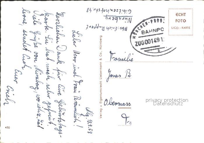 72153551 alte Postkarte NueRNBERG CITY Altstadt mit Burg und Jugendherberge Bahnpost postalisch gelaufen Erhaltung siehe scans KatCode: 11110009564000