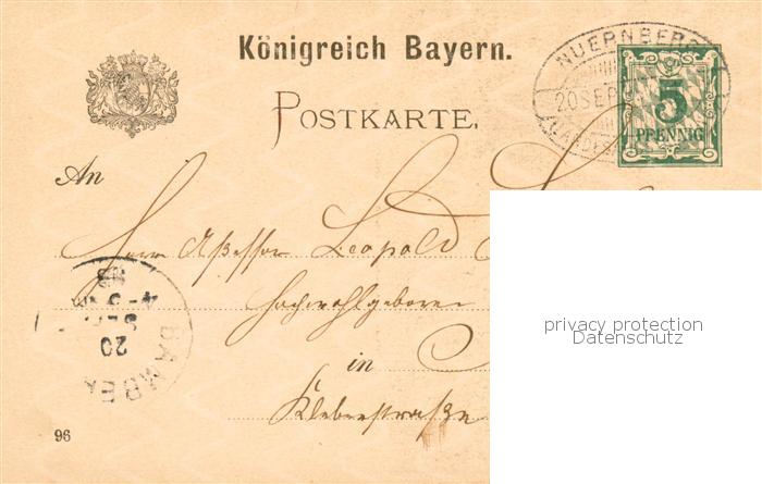 73851757 NueRNBERG CITY Bayerische Landesausstellung 1896 Koenigreich Bayern postalisch gelaufen Erhaltung siehe scans [FriedD77] alte Postkarte Frie Katcode 11110009564000