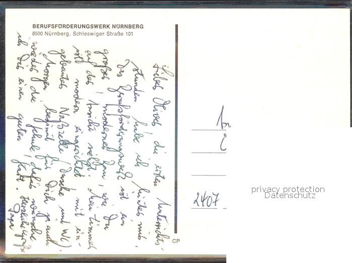 72143777 NueRNBERG CITY Berufsfoerderungswerk postalisch nicht gelaufen Erhaltung siehe scans KatCode: 11110009564000