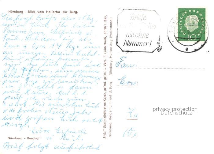 72938984 alte Postkarte NueRNBERG CITY Blick vom Hallertor zur Burg postalisch gelaufen Erhaltung siehe scans [FriedD77] KatCode: 11110009564000