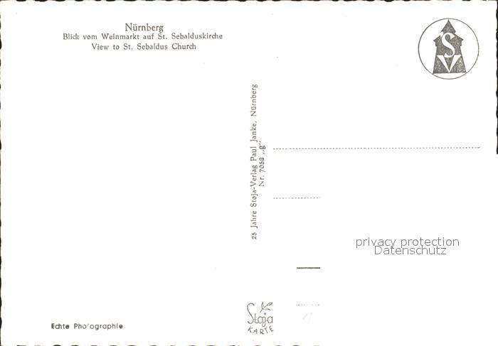 72196228 NueRNBERG CITY Blick vom Weinmarkt auf St Sebalduskirche postalisch nicht gelaufen Erhaltung siehe scans KatCode: 11110009564000