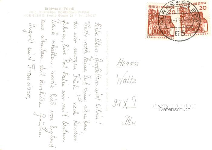 73651467 NueRNBERG CITY Bratwurst Friedel Gastraum postalisch gelaufen Erhaltung siehe scans [WerneD78] alte Postkarte Wern Katcode 11110009564000