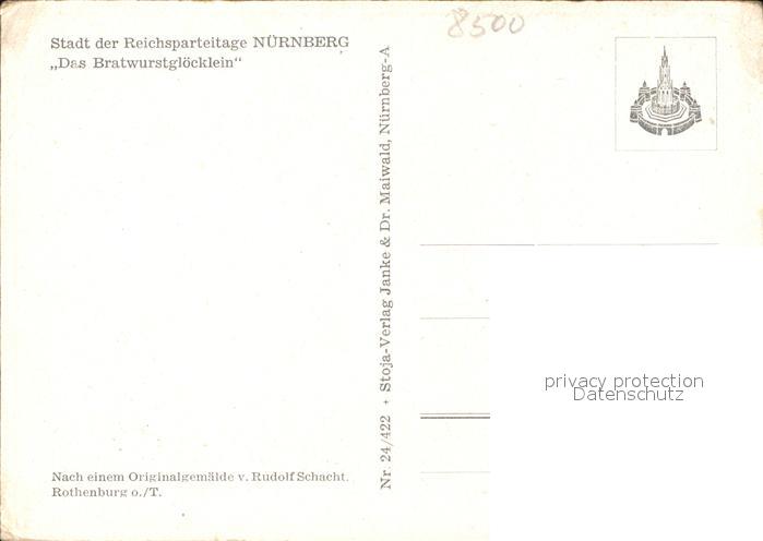 71874803 NueRNBERG CITY Bratwurstgloecklein Kuenstlerkarte postalisch nicht gelaufen Erhaltung siehe scans KatCode: 11110009564000