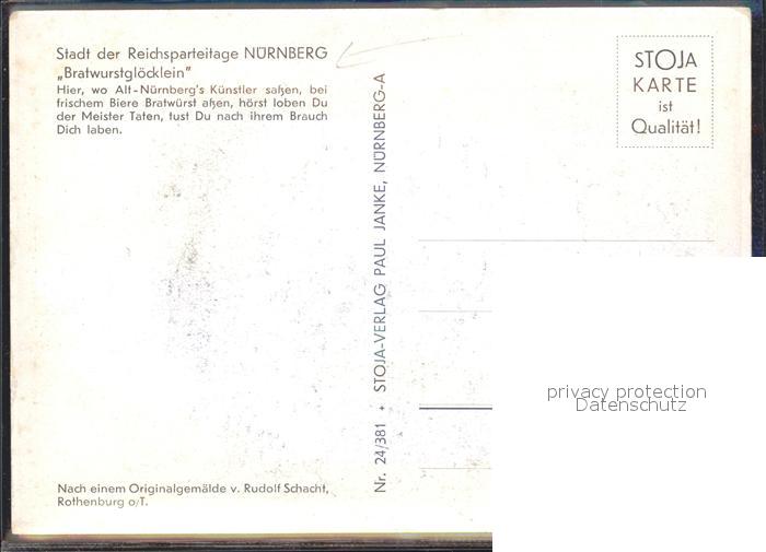 72143776 NueRNBERG CITY Bratwurstgloecklein Kuenstlerkarte postalisch nicht gelaufen Erhaltung siehe scans KatCode: 11110009564000